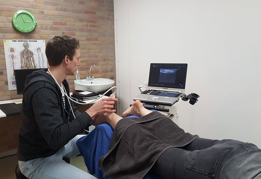 Echografie is een veilige en pijnloze methode om blessures aan spieren en pezen zichtbaar te maken. Eerst bespreekt de fysiotherapeut je klachten en doet een lichamelijk onderzoek om te bepalen of het maken van een echo nuttig is. Als dat zo is, voert een speciaal opgeleide fysiotherapeut de echografie uit.